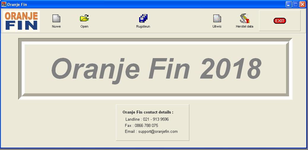 Oranje Fin is 'n kragtige en volledige boekhou program wat maklik is om te gebruik. Selfs al weet jy nie veel van boekhouding nie, sal Oranje Fin die regte keuse wees om jou syfers in orde te kry vir jou boerdery of besigheid. Jy hoef nie 'n plaas te betaal om jou plaas te bestuur nie!. Jy hoef nie 'n ouditeur te wees om jou boeke te doen nie. Ons help jou met die maklike opstelling en gebruik van die program. Korrekte opstelling en noukeurig ingevoerde data sal deur Oranje Fin verwerk word tot betroubare inligting wat nuttig aangewend kan word vir bestuursbesluite, indiening van opgawes en algemene verslaggewing.